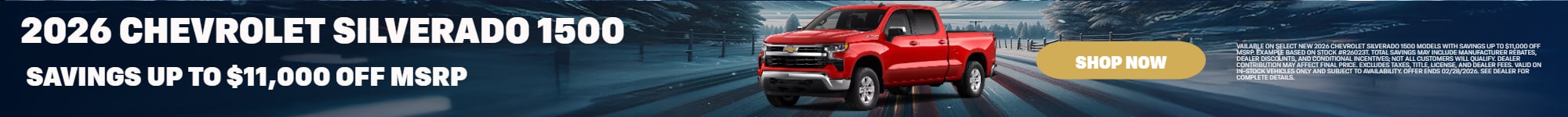 If you currently own a vehicle and would like to trade it in as a part of your next vehicle purchase, we make the process simple. You can easily value your trade-in online and get an estimate as to how much your vehicle is worth. Using this number, you can then determine if you want to trade in your vehicle and how it will impact your future car purchase. This online tool allows our customers to get an estimate for their trade-in without having to visit our dealership.OUR CHEVY SPECIALS